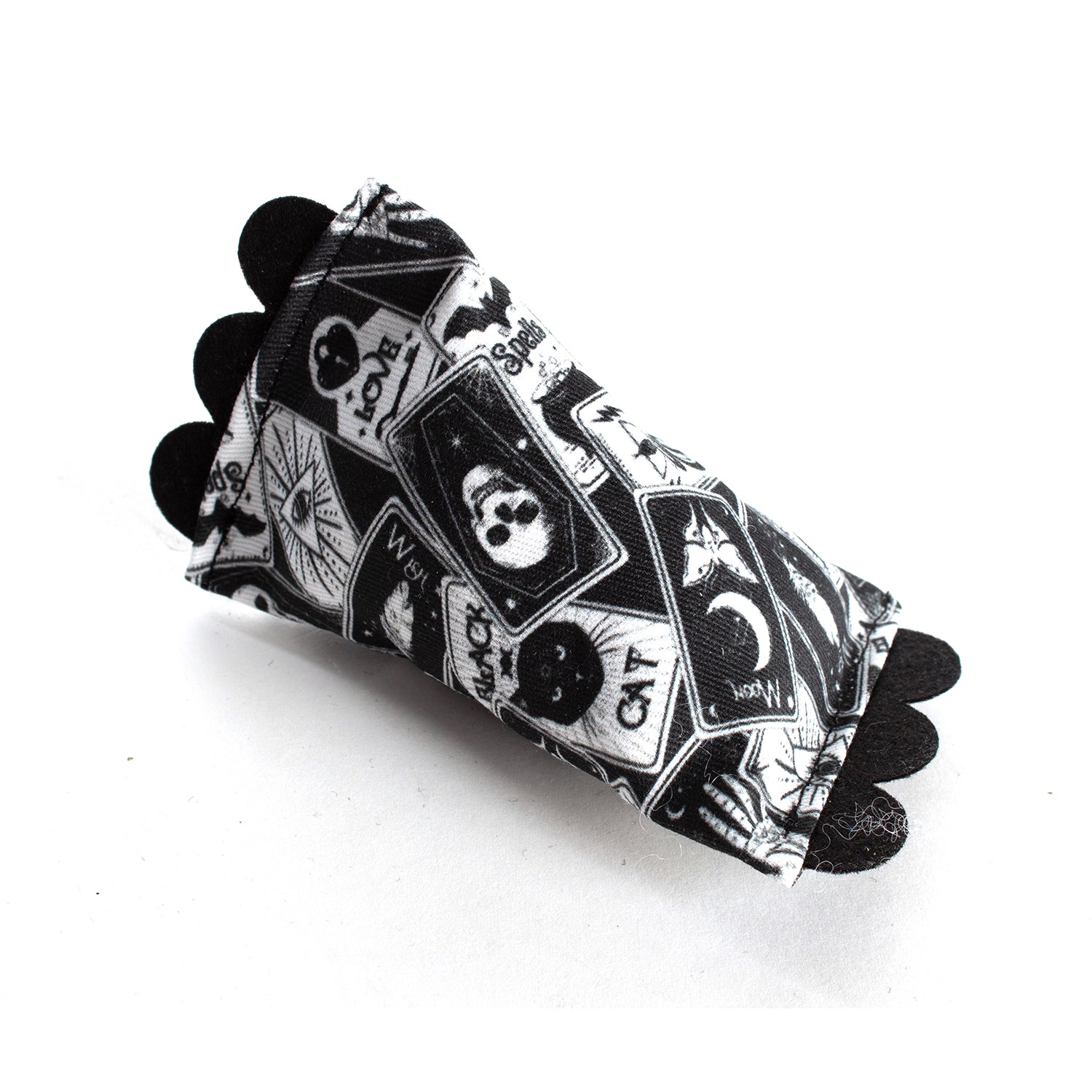 Our ModShakers are for kitties who like to make a little noise when they play. Each toy is filled with organic catnip and a special rattle that makes an enticing noise when kitty bats her ModShaker across the floor or tosses it in the air. Made from sturdy designer fabrics featuring witchy designs for our HauspantherDARK collection.
